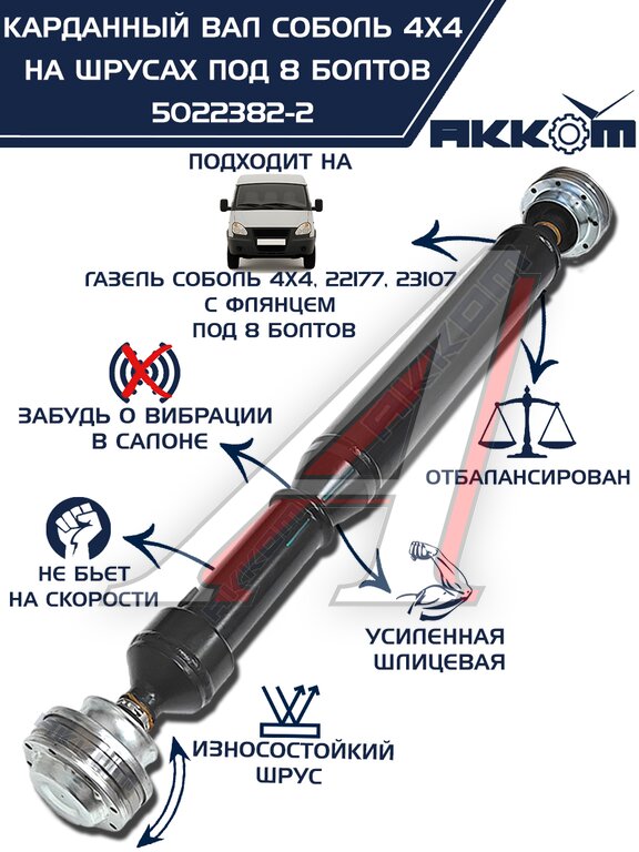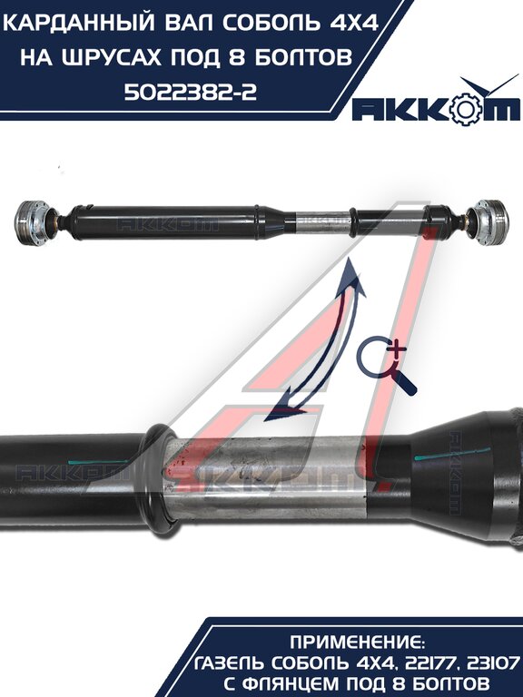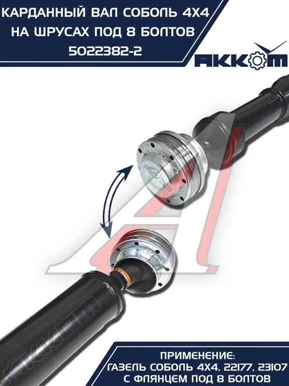 Вал карданный ГАЗ-22177, 23107, передний, 33027 перед/зад. (ШРУС) L=910мм АККОМ