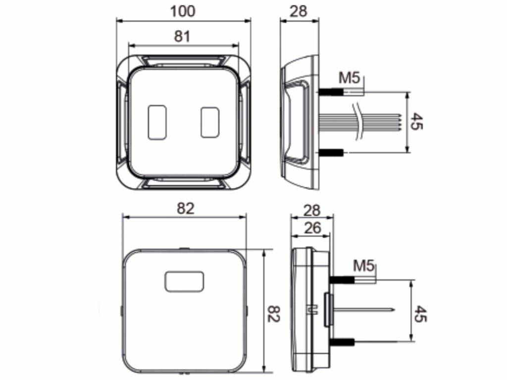 100х100х28/82х82х26мм