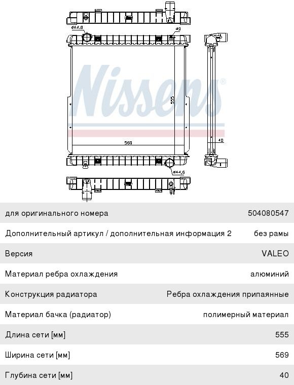Радиатор IVECO Eurocargo охлаждения (555х568х42мм) NISSENS