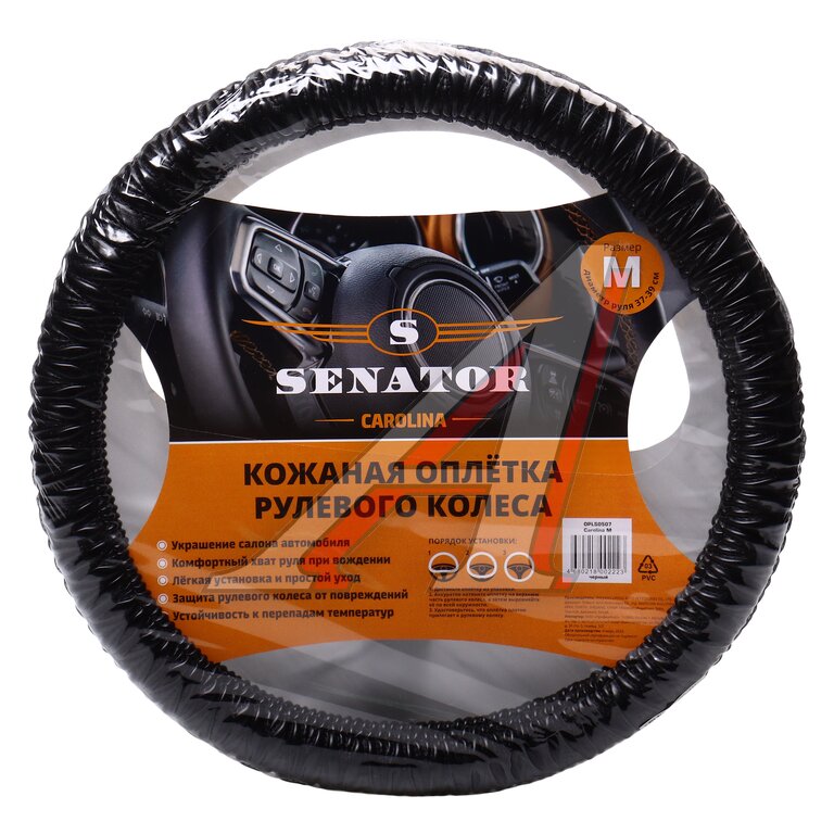 Оплетка руля (M) 37-39см черная кожа Carolina SENATOR
