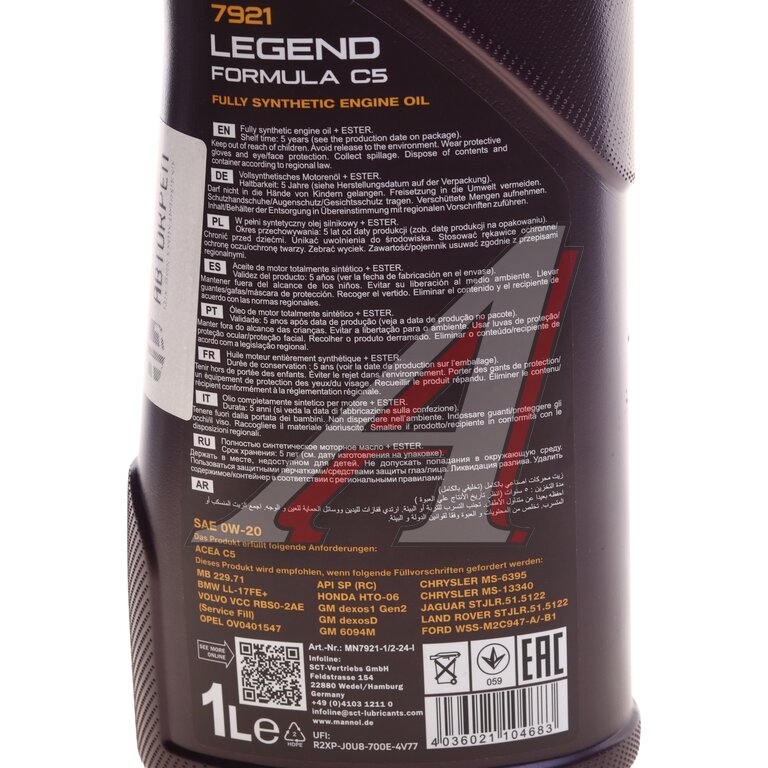 Масло моторное MANNOL LEGEND FORMULA C5 0W20 синт.1л