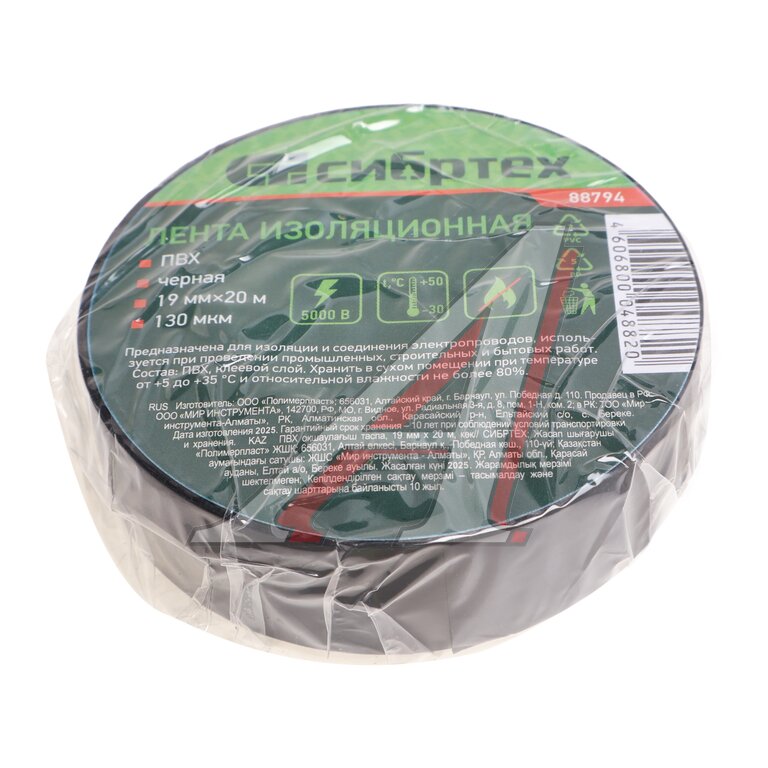Изолента ПВХ черная 19х0.13мм 20м СИБРТЕХ