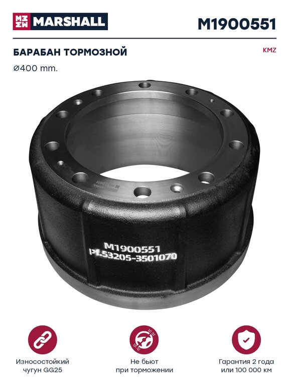 Барабан тормозной КАМАЗ-ЕВРО (d=400мм) MARSHALL