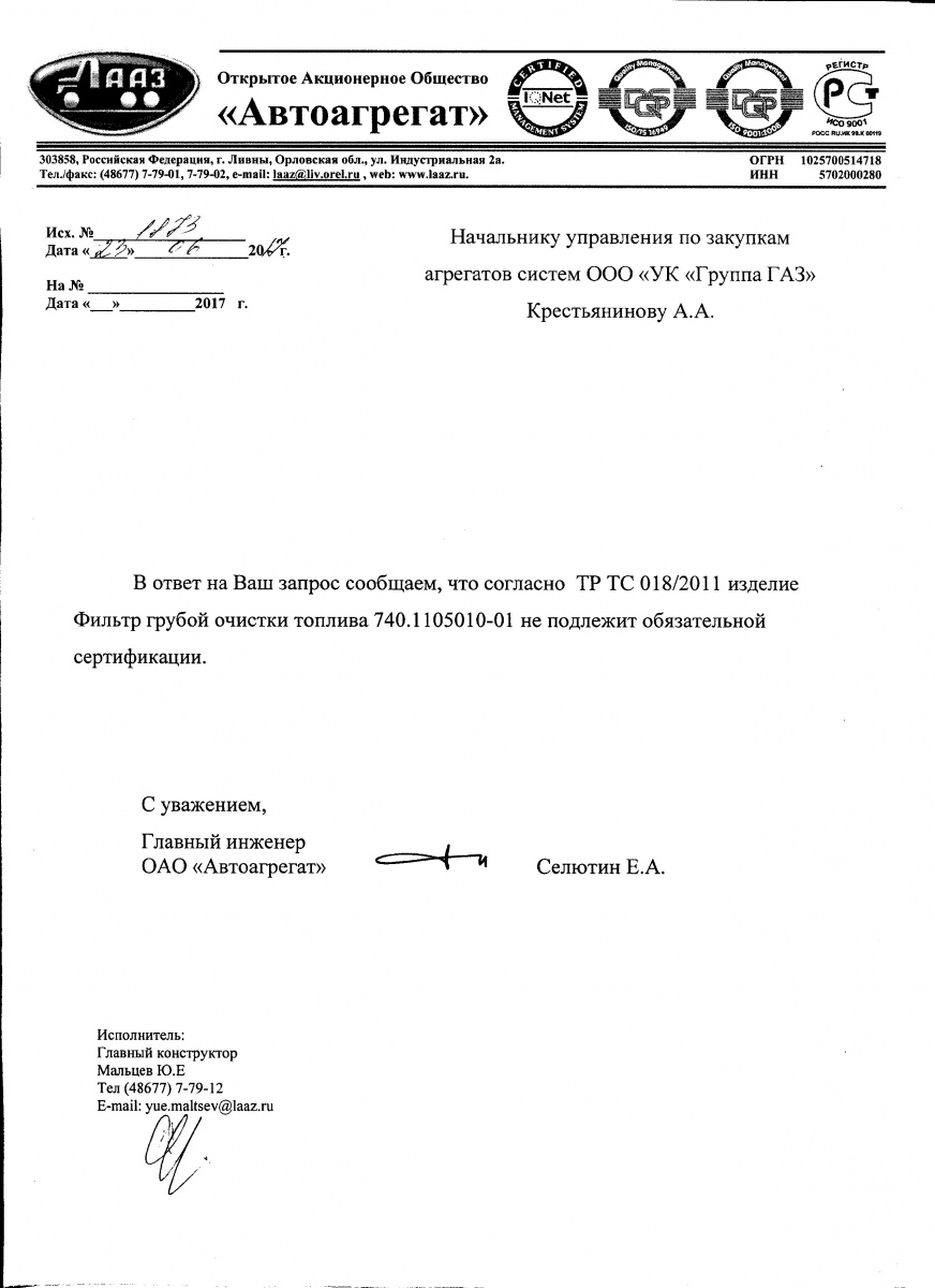 Дополнительный артикул: 740.1105010-01/ 0740-00-1105010-001