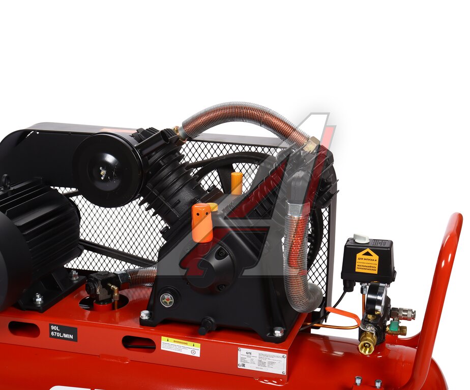 - Ресивер на 90 л экономит ресурс двигателя и обеспечивает запас сжатого воздуха на долгое время