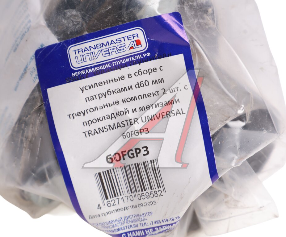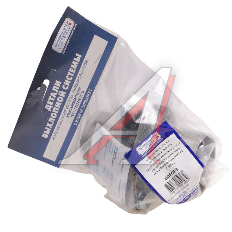 Фланец трубы глушителя d=60мм (прокладка, комплект крепежа, патрубки) треугольный TRANSMASTER