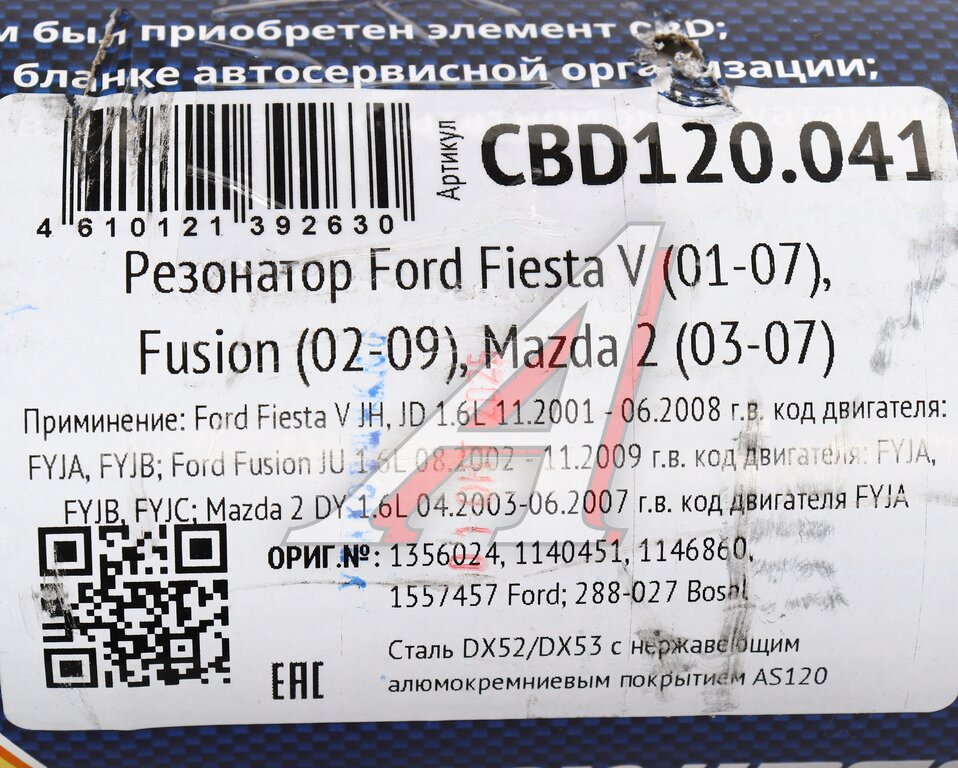 Резонатор FORD Fiesta V (01-07) CBD