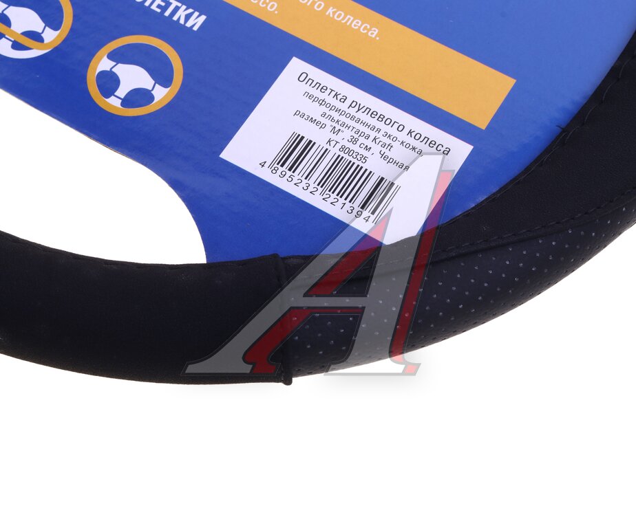Оплетка руля (M) 37-39см черная экокожа-алькантара KRAFT