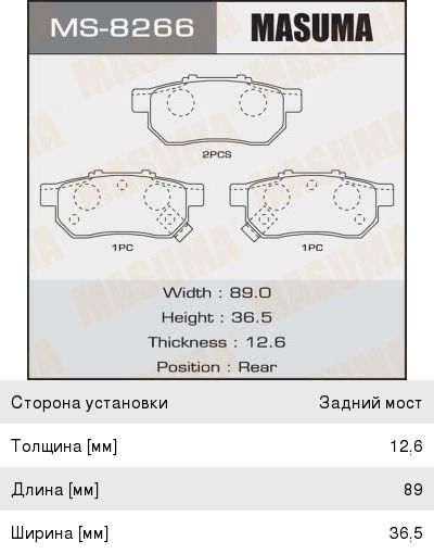 Колодки тормозные HONDA Civic, Integra задние (4шт.) MASUMA
