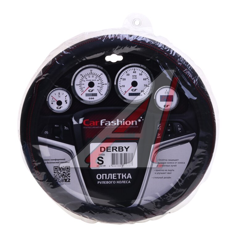 Оплетка руля (S) 35-37см черно-красная экокожа CARFASHION