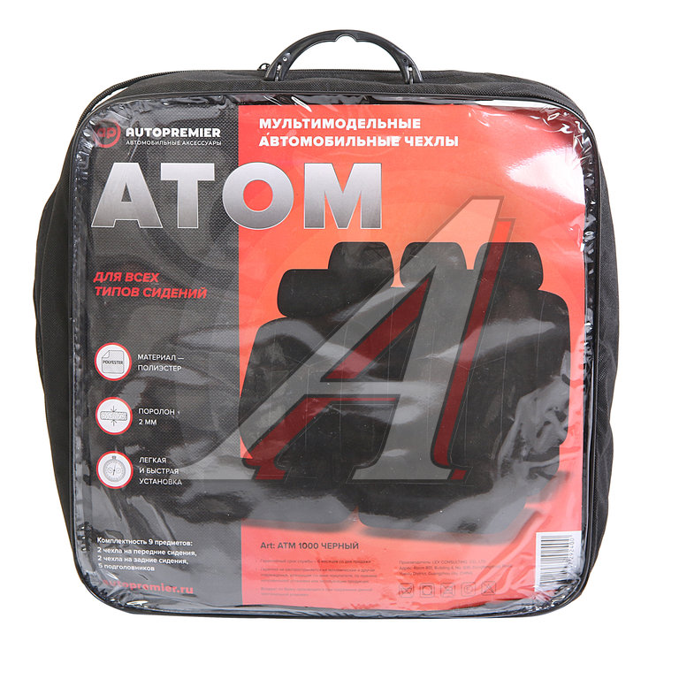 Авточехлы универсальные полиэстер черные (9 предм.) Atom PREMIER
