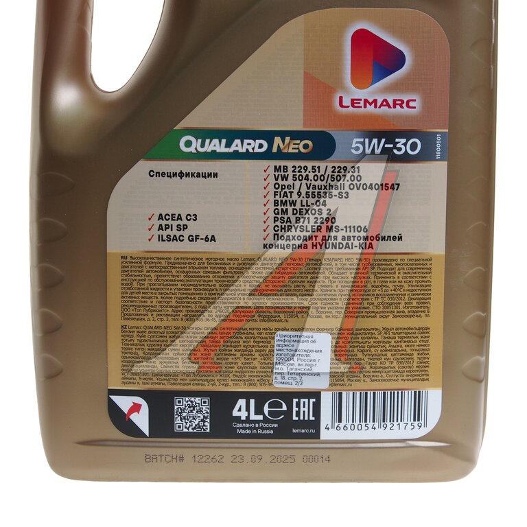 Масло моторное LEMARC QUALARD NEO 5W30 синт. ACEA C3 4л