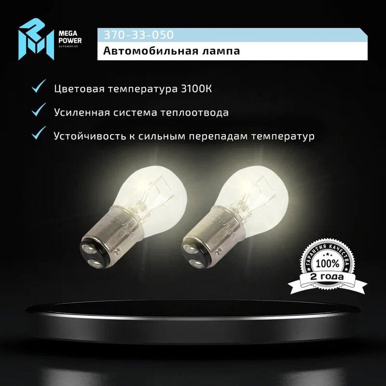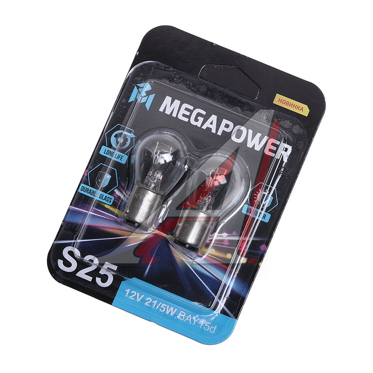 Лампа 12V P21/5W BAY15d блистер (2шт.) Long Life MEGAPOWER