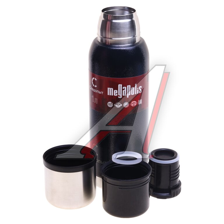 Термос 1.0л широкая горловина, сталь, черный Megapolis СЛЕДОПЫТ