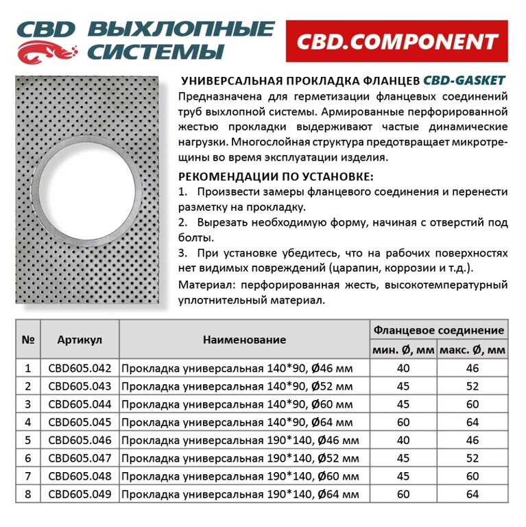 Прокладка CHEVROLET Cruze (09-), Orlando (11-) трубы приемной CBD