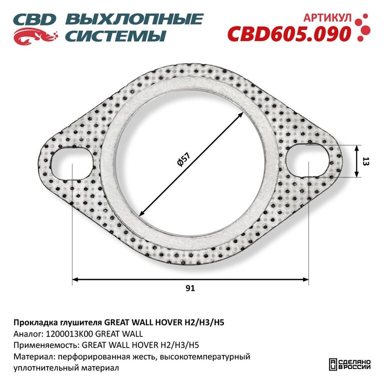 Прокладка GREAT WALL Hover H3, H5 трубы приемной глушителя CBD