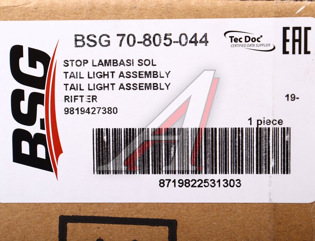 Фонарь задний PEUGEOT Rifter (19-) левый BSG