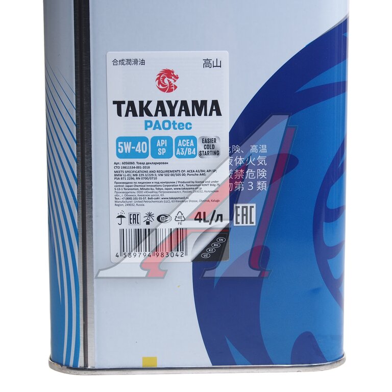 | Артикулы | TAKAYAMA 5W40 |
