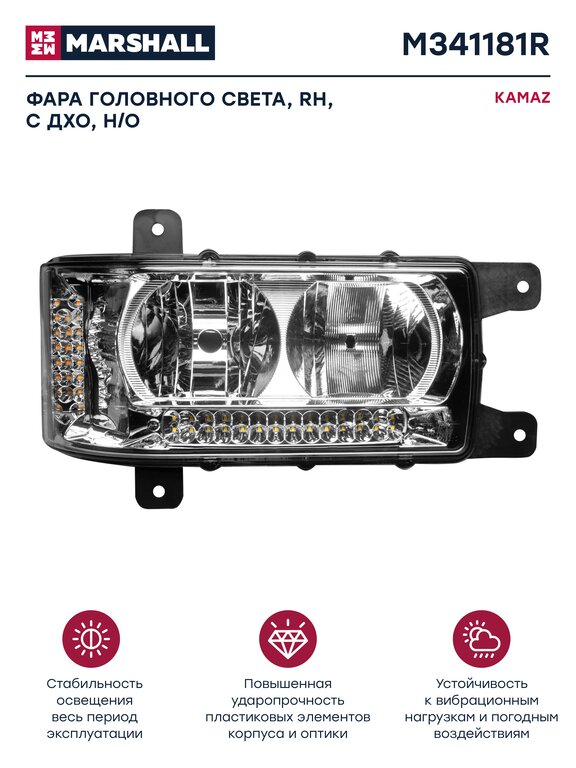 Фара блок КАМАЗ-6520, 6511, 4308 с ДХО правая Н/О MARSHALL