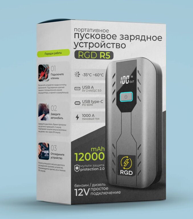 Устройство пусковое 11.8-14.7V 1000A 12000мА/ч (power bank) RGD