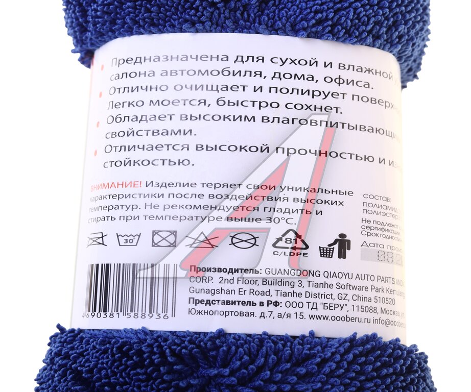 Салфетка микрофибра универсальная 40х60см плотная синяя LI-SA