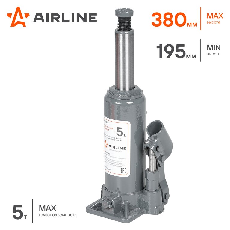 Домкрат бутылочный 5т 195-380мм AIRLINE